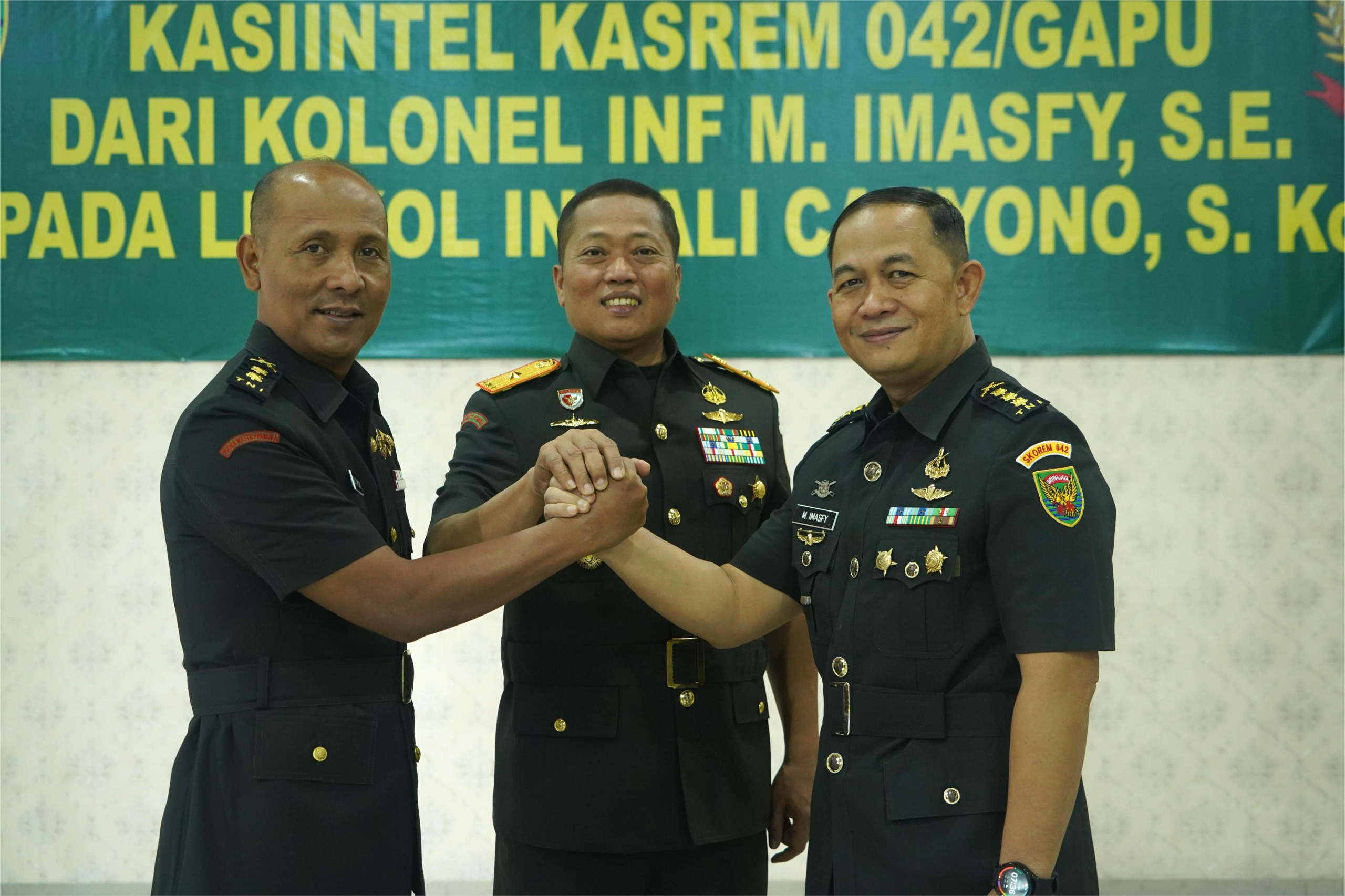 Dan kepada Kolonel Inf M. Imasfy, Danrem mengucapkan terimakasih atas kerja keras, dedikasi serta loyalisnya selama bertugas di Korem 042/Gapu.