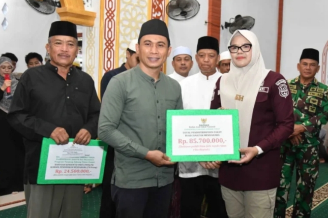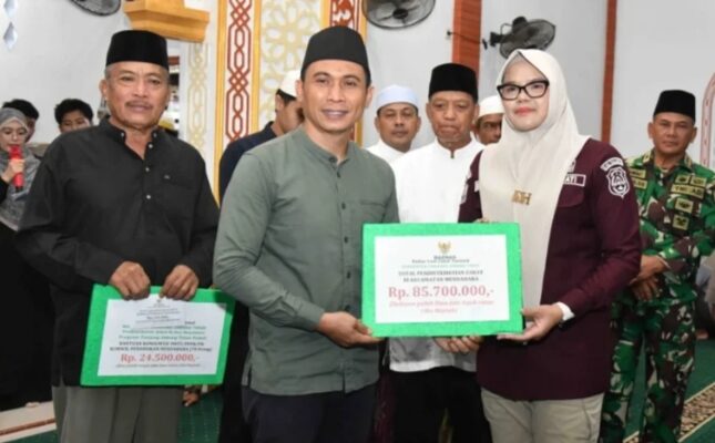 Dalam kesempatan tersebut, Bupati bersama Badan Amil Zakat Nasional (Baznas) Kabupaten Tanjung Jabung Timur menyalurkan bantuan sosial keagamaan dengan total distribusi zakat di Kecamatan Mendahara mencapai Rp85.700.000. Penyaluran bantuan ini merupakan wujud nyata kepedulian pemerintah daerah terhadap kesejahteraan masyarakat dan peningkatan sarana keagamaan.