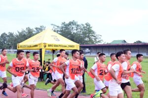 Suasana menjadi semakin penuh semangat saat Kapolda Jambi juga ikut serta berlari di arena bersama para calon taruna. Kehadiran Kapolda menjadi bukti nyata komitmen pimpinan Polda Jambi dalam memastikan proses seleksi berlangsung secara transparan, akuntabel, dan berintegritas.