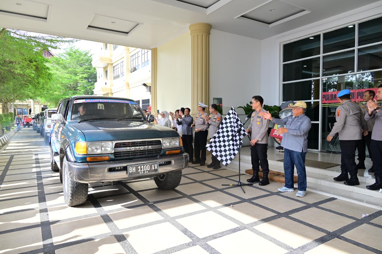 Kegiatan dimulai dengan pengecekan kendaraan, dilanjutkan dengan penyerahan cendera mata, serta prosesi pelepasan resmi oleh Kapolda Jambi.