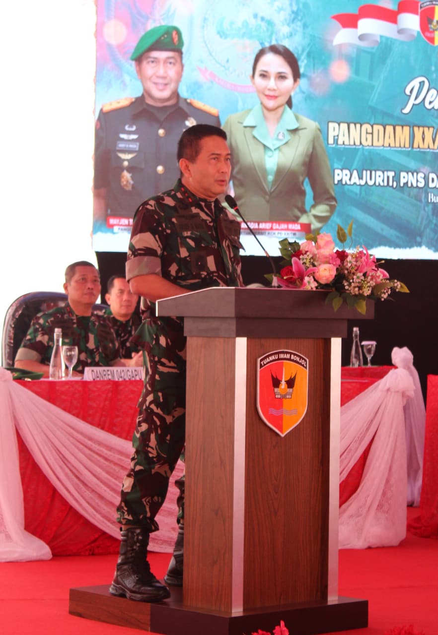 Dalam pengarahannya, Mayjen TNI Arief Gajah Mada menyampaikan pentingnya menjaga soliditas TNI bersama pemerintah daerah dan kemanunggalan TBI-Rakyat dalam mendukung pembangunan. Pangdam XX/TIB juga menekankan agar seluruh prajurit tetap memegang teguh jati diri TNI sebagai tentara rakyat, tentara pejuang, tentara nasional, dan tentara profesional.