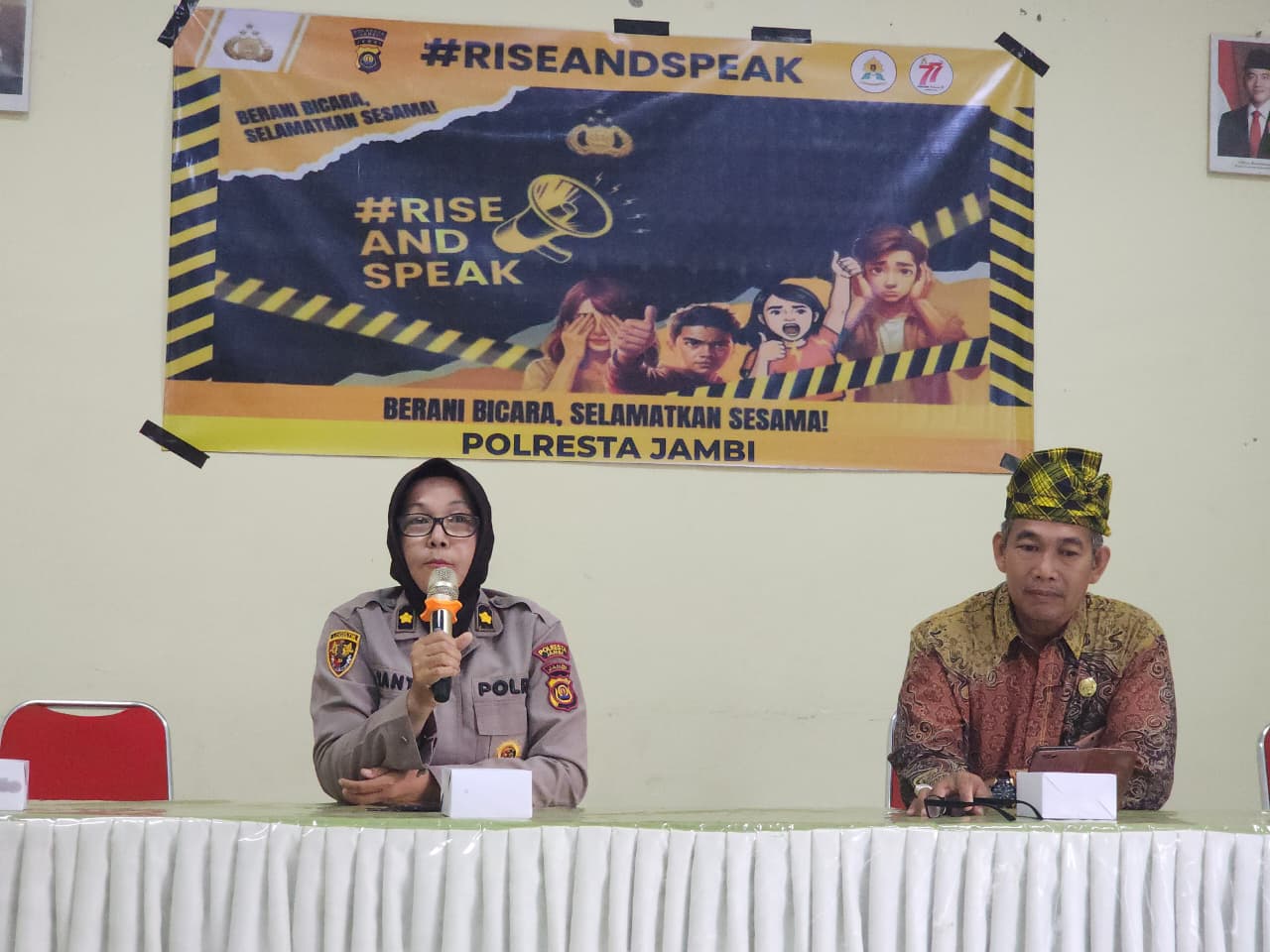 Polresta Jambi Dukung Kegiatan “Rise and Speak (Polwan Goes to School)” dalam Rangka HUT Polwan ke-77.