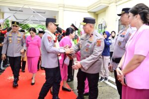 Sabaknews.co|Jambi – Rangkaian acara diawali dengan penyambutan di Mapolda Jambi dan pengalungan bunga oleh Irjen Pol. Rusdi Hartono kepada Kapolda Jambi yang baru, diikuti dengan penyerahan buket bunga oleh Ny. Irena Rusdi Hartono kepada Ketua Bhayangkari Daerah Jambi,Rabu (19/03/2025).