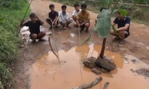 “Tidak hanya itu, kami juga mancing belut besar di kubangan air jalan rusak,”terangnya.
