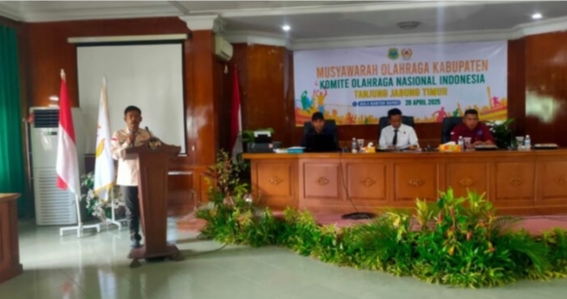 Sabaknews.co|Tanjabtimur-Komite Olahraga Nasional Indonesia (KONI) Kabupaten Tanjabtim menggelar Musyawarah Olahraga Kabupaten (Musorkab) tahun 2025, di Aula Kantor Bupati Tanjabtim, Senin (28/04/2025) siang.