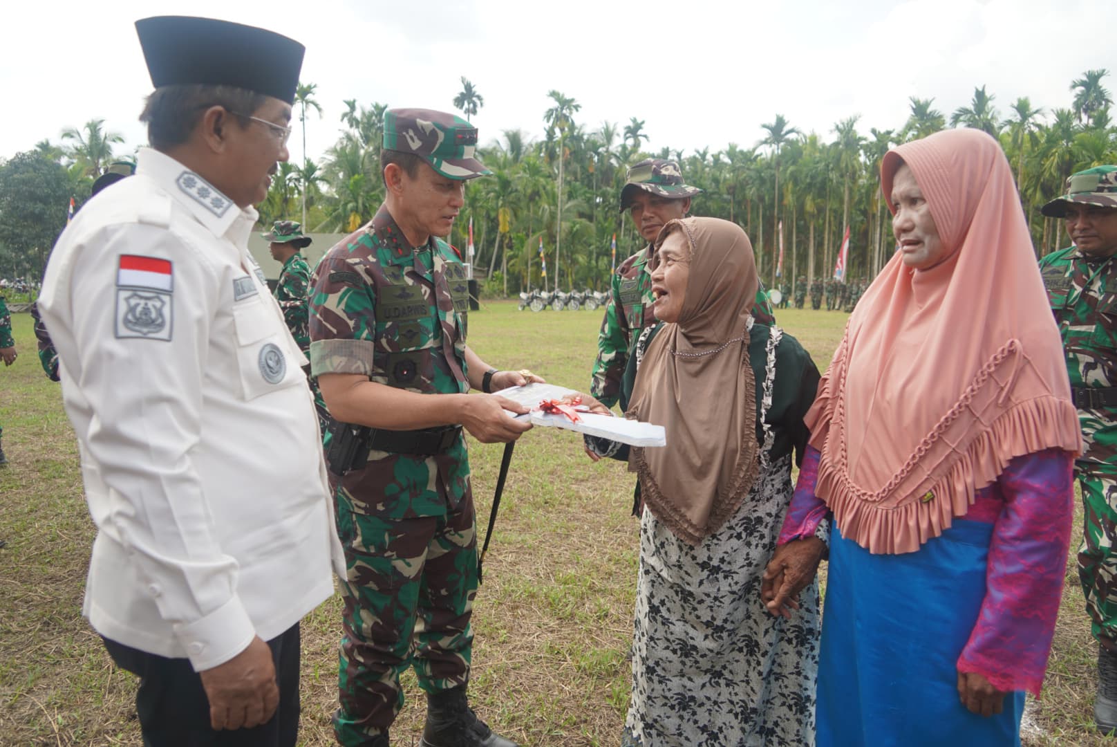 Rangkaian upacara penutupan turut dimeriahkan dengan penyerahan kunci rumah program RTLH, pembagian paket sembako, penyerahan hadiah turnamen bola voli Dandim Cup, serta pemberian akta badan hukum kepada Koperasi Desa Merah Putih se-Kecamatan Bram Itam. Pangdam beserta rombongan juga meninjau layanan pemeriksaan kesehatan dan produk UMKM warga setempat.